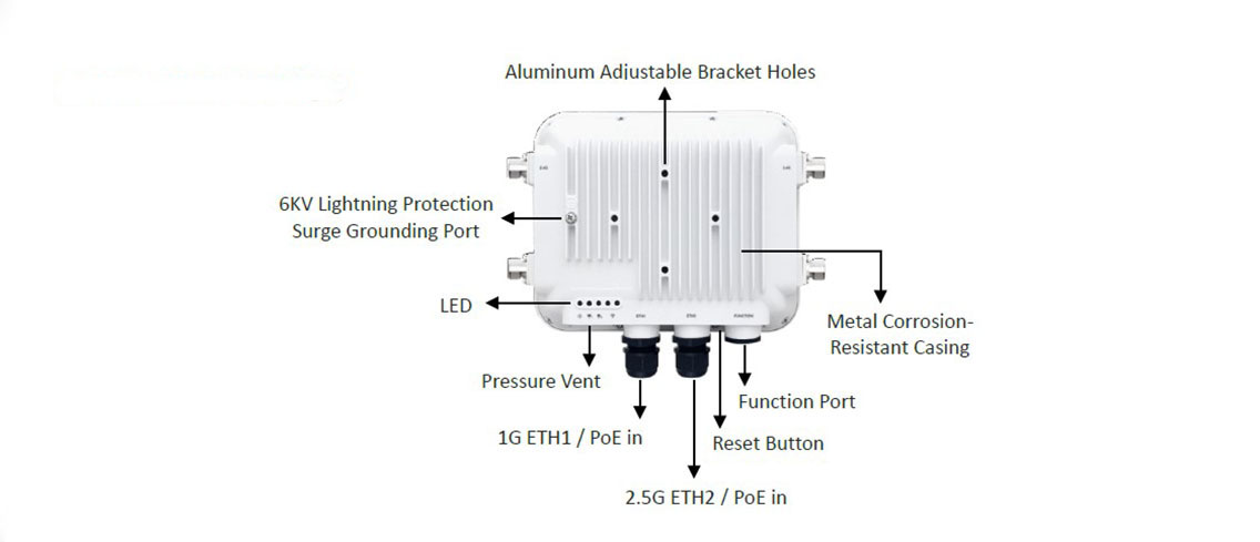 • Aluminum casing design help to achieve optimal heat dissipation in hot outdoor environments, ensuring that the device maintains the best transmission performance at all times.