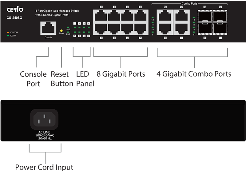 CS-1224XG 24 Port 10/100/1000M Gigabit Switch with 2 SFP 10G Ports